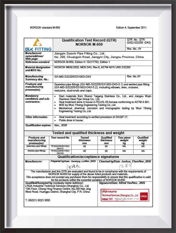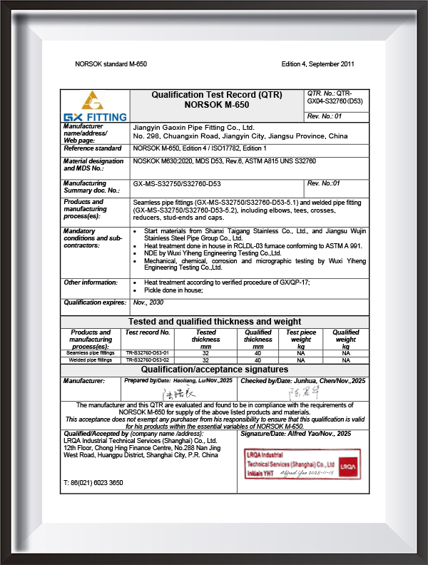 Naša tvrtka je profesionalni proizvođač spojnih dijelova za posebne materijale. Naš asortiman proizvoda obuhvaća spojne dijelove za sučeono zavarivanje, zavarene naglavkom i navojne spojeve za cijevi, uključujući prirubnice i prilagođene nestandardne dijelove. Ovi se proizvodi naširoko koriste u industrijama kao što su nafta i plin, kemijska obrada, proizvodnja električne energije, brodogradnja, proizvodnja papira, metalurgija, farmaceutska industrija i obrada hrane. Proizvodimo u skladu sa standardima kao što su ASME, EN, JIS, DIN, ANSI, GOST, MSS, GB/T, HG, DL, SH, SY i imamo kompletan asortiman opreme za inspekciju, strogi sustav kontrole kvalitete i razne certifikate (PED, AD2000, EAC, ABS, BV, DNV, NORSOK M650, ISO9001,ISO14001,ISO45001, itd.), što nas čini vodećim u industriji.