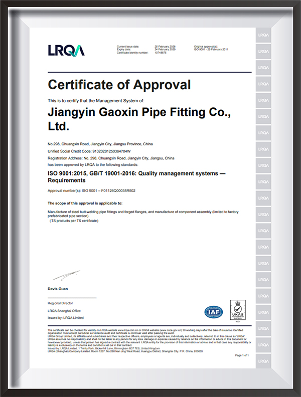 Usklađenost s međunarodnim i industrijskim standardima kao što su ASME B16.9, GB/T12459, EN10253, JIS B2311, DIN2615, ANSI, GOST itd. i podrška prilagođenoj proizvodnji.